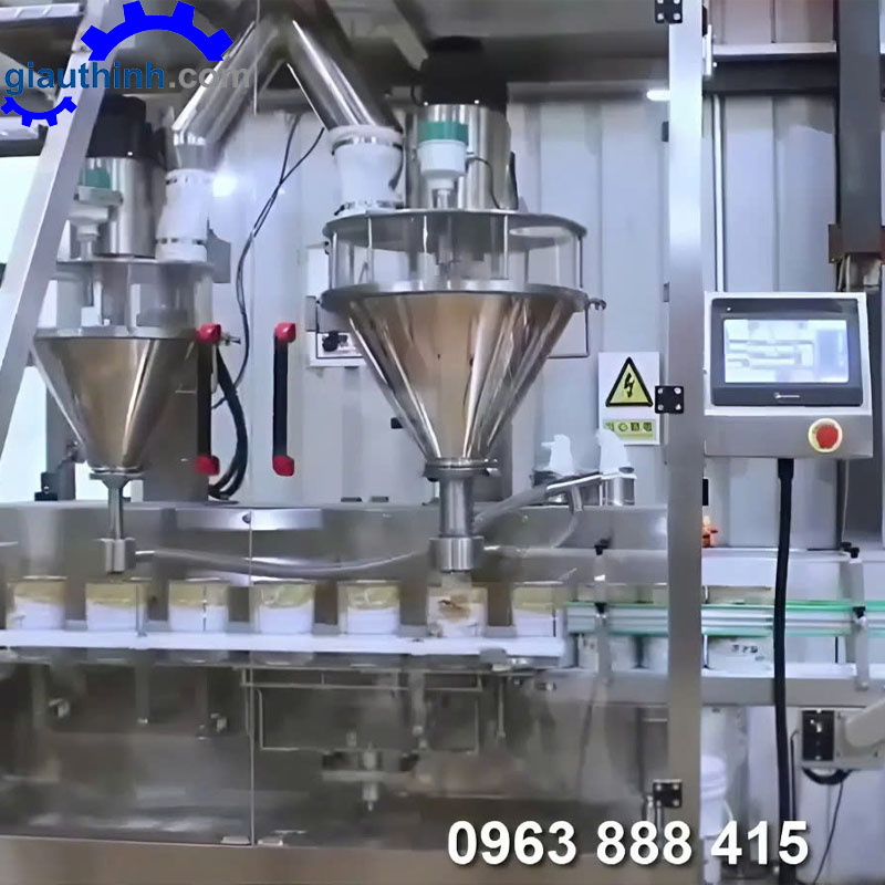 Máy chiết rót lon sữa bột- Máy chiết rót bột vào lon tự động